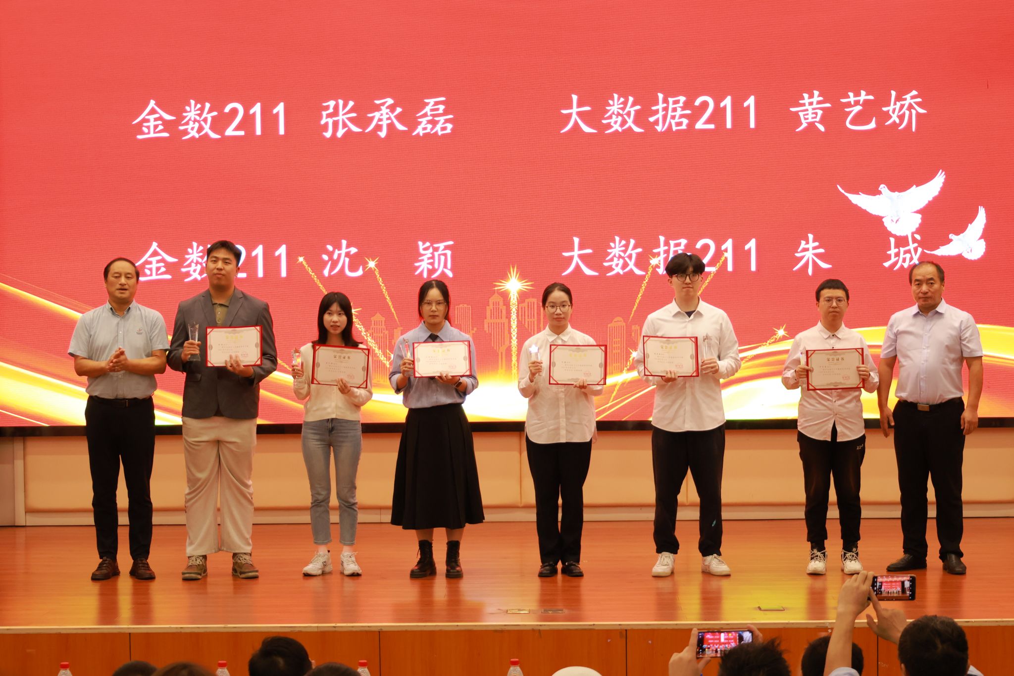 表彰先进树榜样,砥砺前行再出发。大会对学院成功考取研究生的同学予以表彰。俞善锋先生和宁自军院长为获奖学生颁发荣誉证书和奖杯并勉励他们继续发扬刻苦钻研的精神,在研究生阶段再创佳绩。