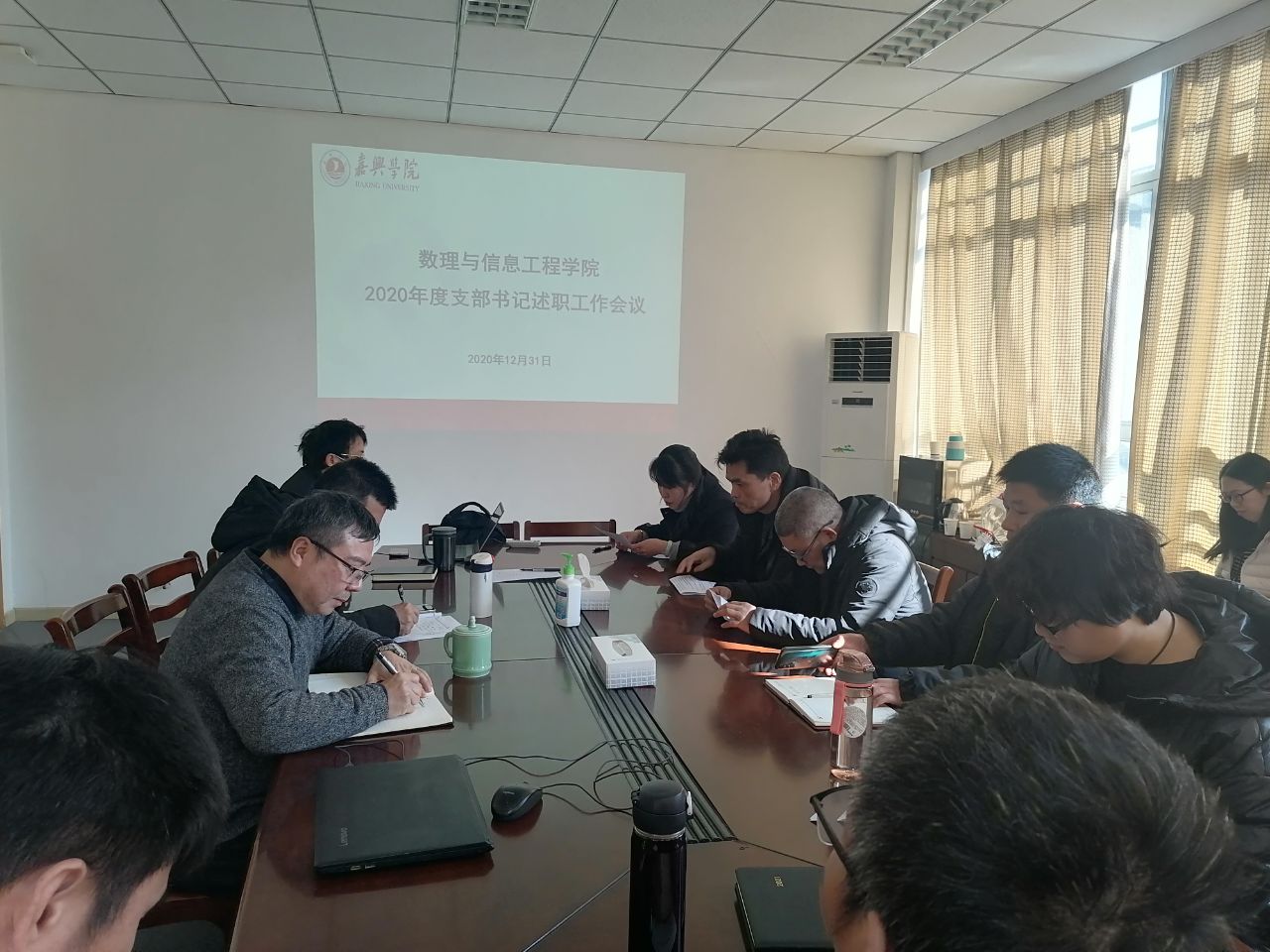 2020年12月31日中午,学院召开2020年度党支部书记工作述职会议,会议由学院党委书记马柏林主持,学院党委委员和全体支部书记参加会议。