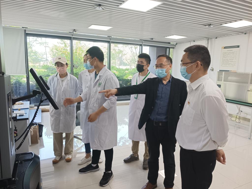 陈新友一行首先参观了嘉兴学院G60研究院重点实验室,详细了解研究院发展历程、运营模式及科技成果。