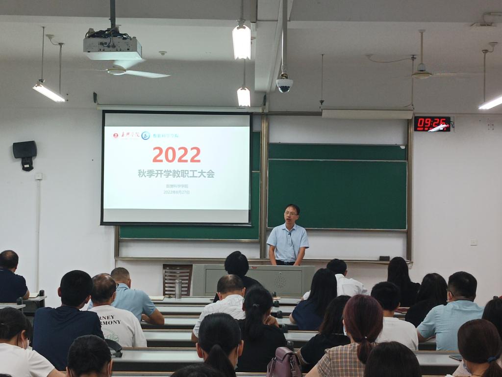 8月27日上午,今年会jinnianhui官网在博学楼召开2022年秋季学期开学全体教职工大会。大会由党委书记战昕主持。