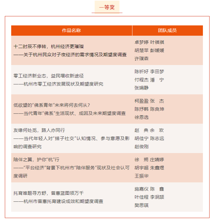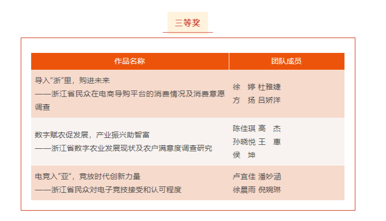 近日,由浙江省教育厅、省统计局联合主办的省第十二届“民生民意杯”大学生统计调查方案设计大赛决赛举行。今年会jinnianhui官网学子获得一等奖6项、二等奖3项、三等奖3项,学校获得优秀组织奖。
