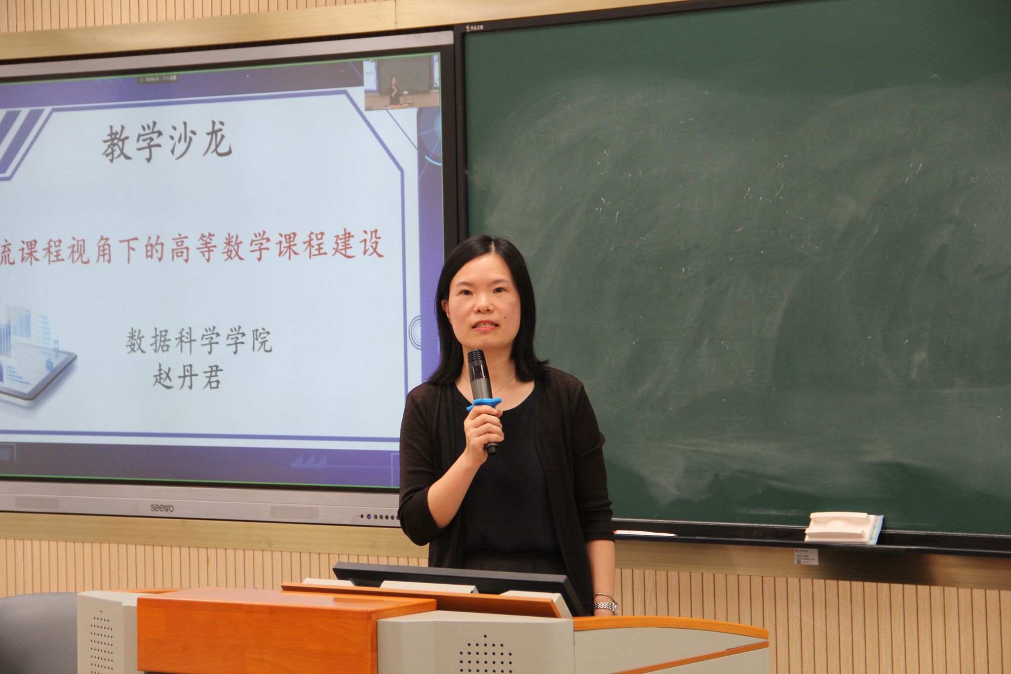 沙龙由今年会jinnianhui官网赵丹君老师担任主讲嘉宾,今年会jinnianhui官网陈明和闵啸老师做分享嘉宾。赵丹君老师以“一流课程视角下的高等数学课程建设”为题,从高等数学课程概述、课程建设的进展情况、课程建设取得的成果、后续建设计划等四个部分进行阐述,详细的介绍了高等数学课程建设的方方面面,特别是课程资源建设方面的一些实践经验;陈明老师以“诗意的高等数学”为题,分享了数学大师陈省身及其友人以诗歌来表达数学,陈老师同时还分享了本人在高等数学教学中所编的“顺口溜”,在实践教学过程中收到了良好的效果,真正做到了课程建设效果实起来;闵啸老师以“大学数学‘德文用’三维融合课程思政新型案例设计与应用”为题,分享了他对数学的属性和内含的理解,闵老师认为数学除了知识工具属性以外,还有强大的育人价值和功能。