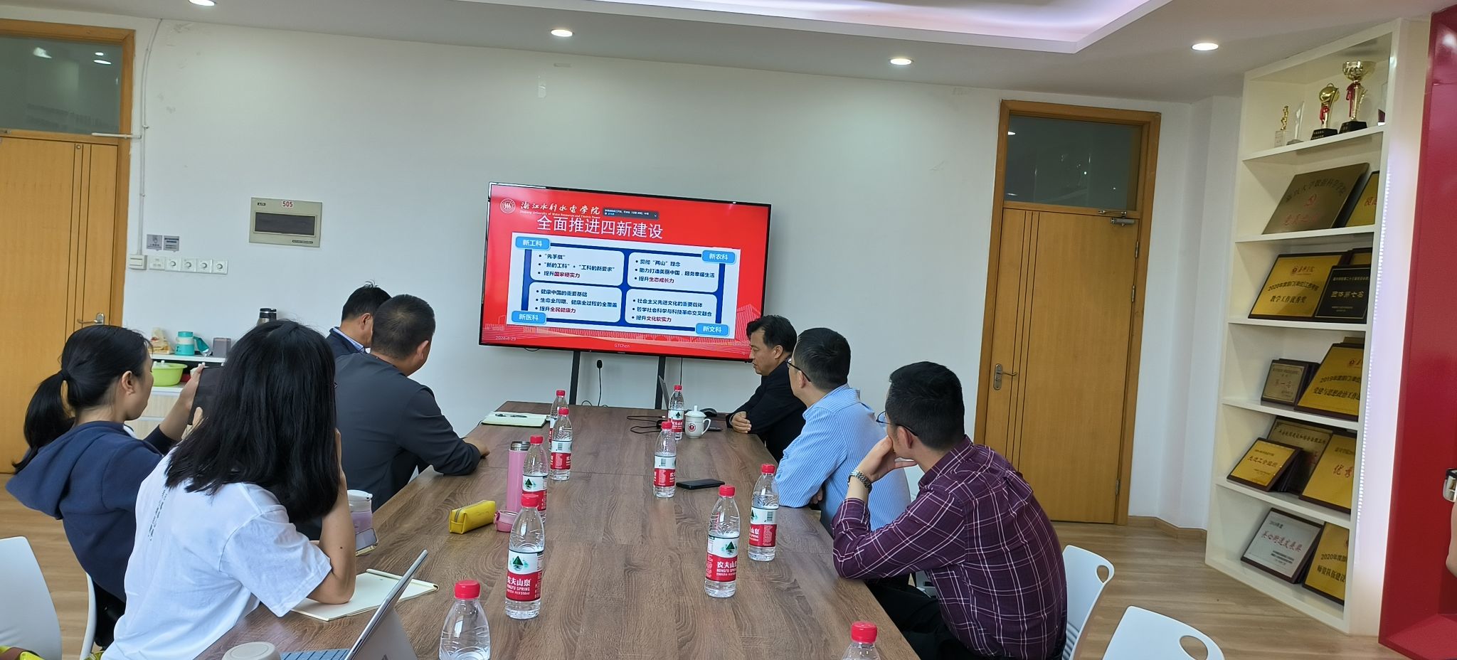 下午的交流活动由李启会副院长主持,陈校长给学院教师作了题为“‘四新’背景下大学数学改革与建设”的主旨报告,针对当前大学各类专业在新形态下教书育人,特别是数学教学中存在的一些问题和现状谈了自己思考与见解,强调教学过程中数学思想和数学文化的传播与熏陶格外重要,学生可以受益终身。报告过程中,陈校长随时和在座老师们进行交流互动,气氛轻松、愉悦,老师们也从各自角度谈了看法与想法,交换了意见和建议,交流活动与17:00结束。
