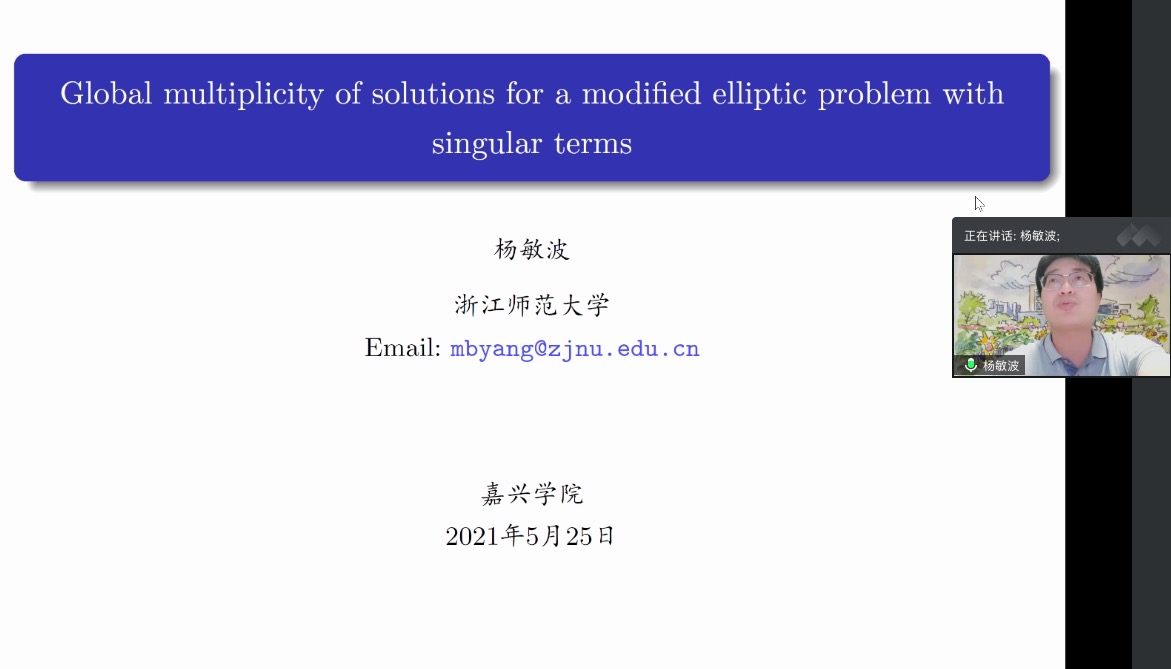 2021年5月25日晚上7点,浙江师范大学初阳学院副院长、博士生导师杨敏波教授应邀通过腾讯会议为今年会师生做学术报告。讲座由刘海东副教授主持,学院部分老师、本科生和联培研究生参加了本次学术报告。