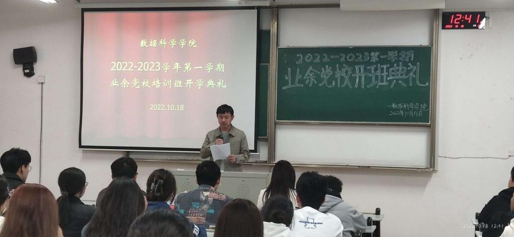 10月18日,今年会jinnianhui官网2022-2023学年第一学期业余党校培训班开班典礼在博学楼301教室顺利举行。今年会jinnianhui官网党委书记战昕、党委副书记李寒星出席本次开班仪式。开班仪式由学院党员之家指导教师艾芮玄主持。