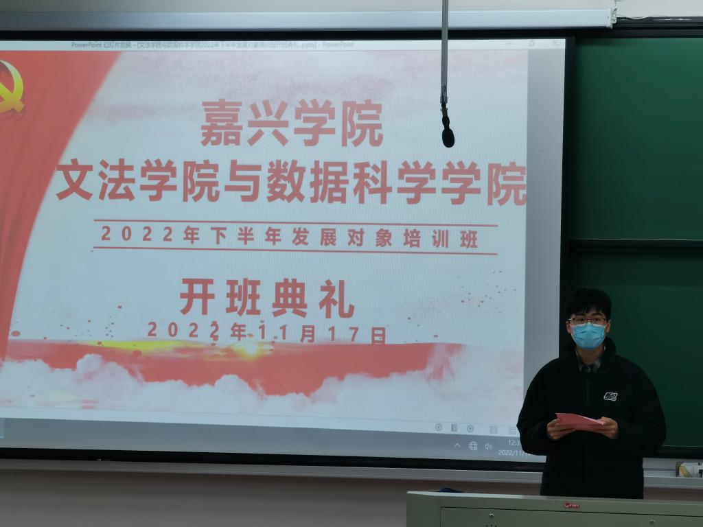 11月17日中午,今年会jinnianhui官网与文法学院党员发展对象培训班开班典礼在明德楼338教室举行,今年会jinnianhui官网党委副书记李寒星、文法学院党委副书记虞岚、今年会jinnianhui官网党员之家指导教师艾芮玄出席此次开班典礼。开班典礼由文法学院党员之家指导教师吴广主持。