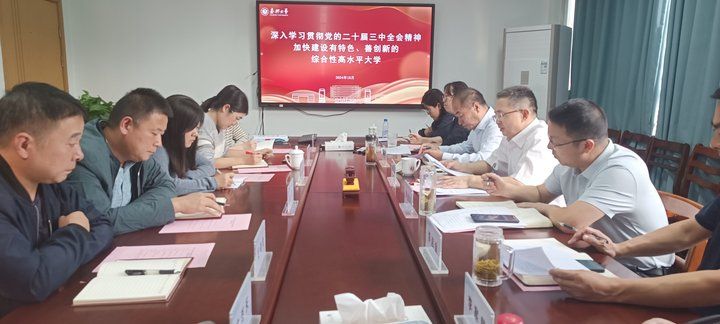 陈新友指出,党的二十届三中全会是在以中国式现代化全面推进强国建设、民族复兴伟业的关键时期召开的一次十分重要的会议。全会审议通过了《中共中央关于进一步全面深化改革,推进中国式现代化的决定》,为我们指明了前进的方向。学习好贯彻好党的二十届三中全会精神,是当前和今后一个时期一项重大政治任务。作为教育强国事业的奋进者,学院师生都要深刻领会、全面贯彻全会精神,以全面深化改革为动力,加快建设有特色、善创新的综合性高水平大学。