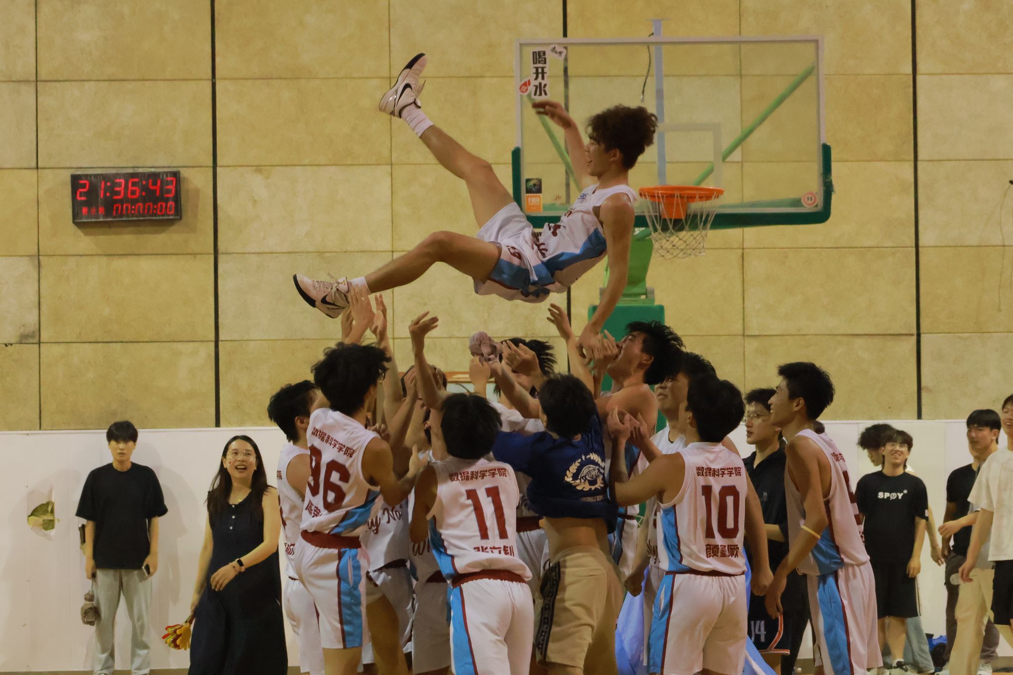本届篮球赛中,数科学院男篮一路披荆斩棘、势如破竹,以傲人战绩挺进决赛。决赛赛场上,队员们拼尽全力、精准传球,每一次突破都点燃全场,每一次防守都彰显团队力量。比赛过程中出现比分胶着,悬念迭起的形势,数科拉拉队的加油声震耳欲聋,响彻场馆!