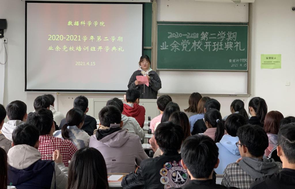 在激昂的国歌声中,开学典礼拉开了序幕。主持人为同学们介绍本期业余党校学员情况并宣读党校纪律,对党校课程安排、纪律问题、学习形式等相关事宜做详细介绍。金数201徐婧涵同学代表全体学员发言,她表示将严格遵守党校各项规章制度,和大家共同学习、共同进步。