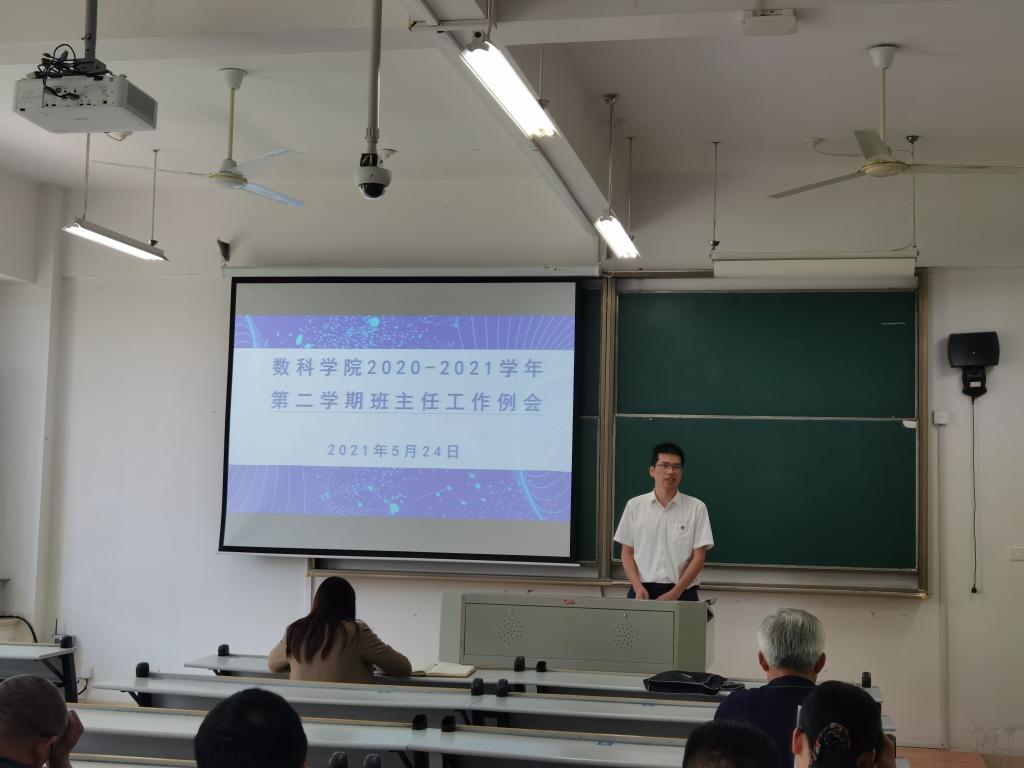 为切实做好学院学生安全稳定工作,深入推进和谐校园建设,进一步贯彻落实学校“建党百年”校园安全专项行动,5月24日中午,今年会jinnianhui官网在8号楼205教室召开班主任会议。学院党委书记战昕出席,全体班主任、辅导员参会。会议由学院党委副书记余德将主持。