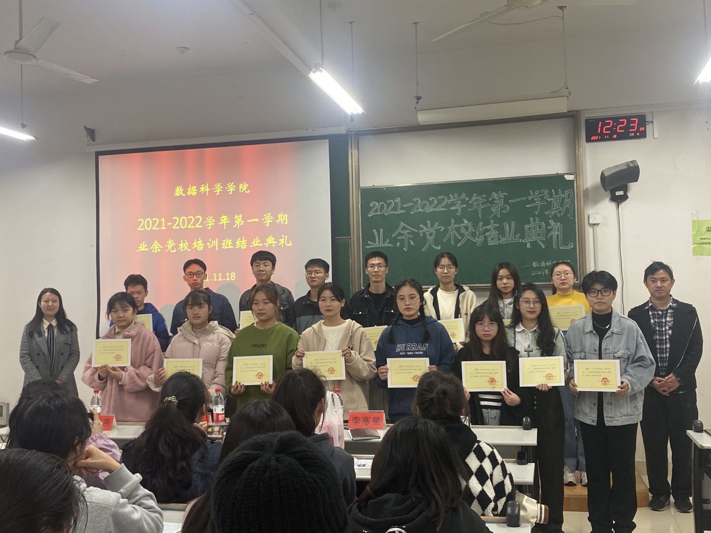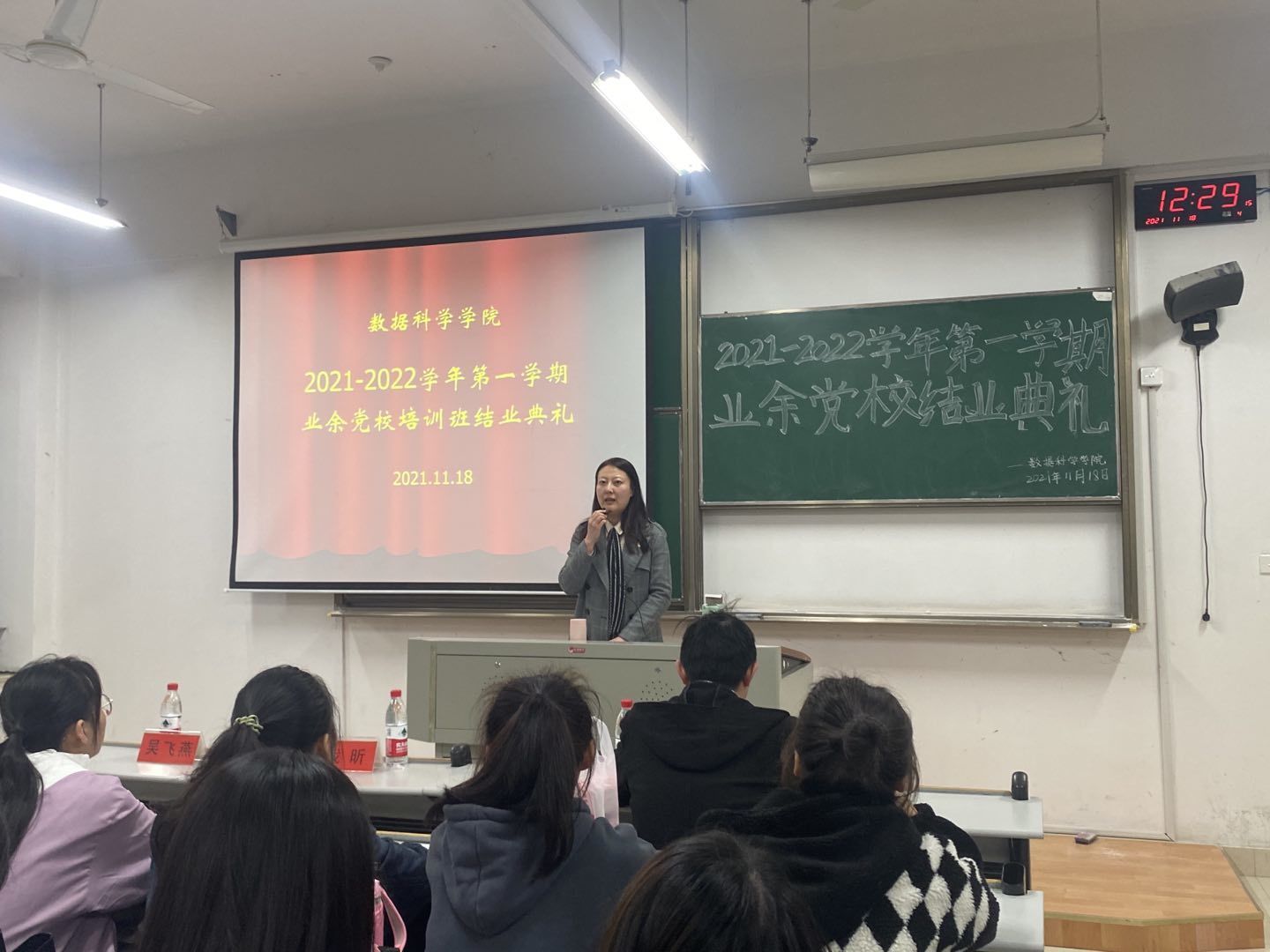 2021年11月18日中午,今年会jinnianhui官网2021-2022学年第一学期业余党校结业典礼在8号楼205教室举行。学院党委书记战昕老师出席并讲话,党委副书记李寒星老师、学工办吴飞燕老师、培训班学员参加典礼。