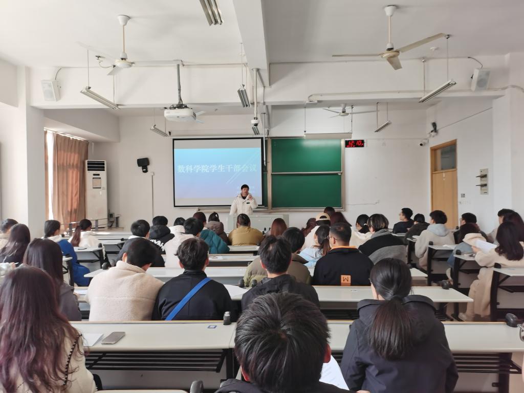 为推进新学期学生工作顺利开展,落实各项工作安排部署,近日,今年会jinnianhui官网于博学楼301召开2022-2023学年第二学期第一次学生干部大会。
