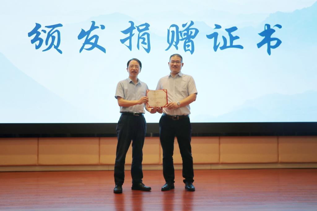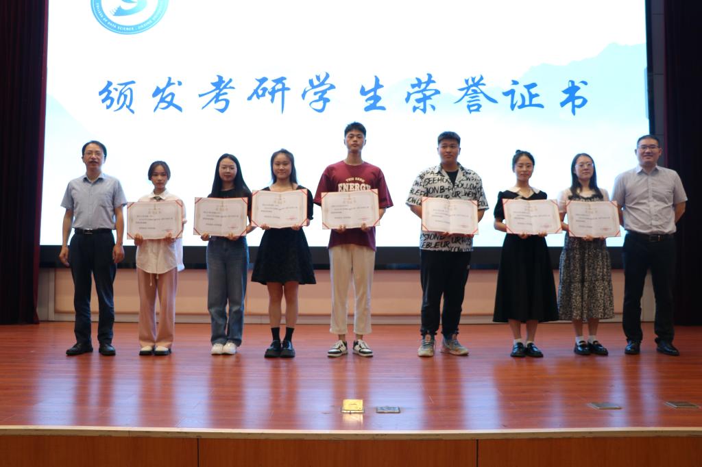 随后,黄健代表启航教育向学院捐赠了教育发展基金,张景军为其颁发捐赠证书,感谢启航教育长期以来对学院考研工作的支持与帮助。同时,张景军为2023届考取研究生的学生代表颁发荣誉证书,勉励他们继续坚持学习,攀登高峰。